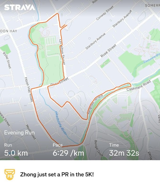 #跑了 5km,配速6:29。我很满意了,虽然累得气喘吁吁。